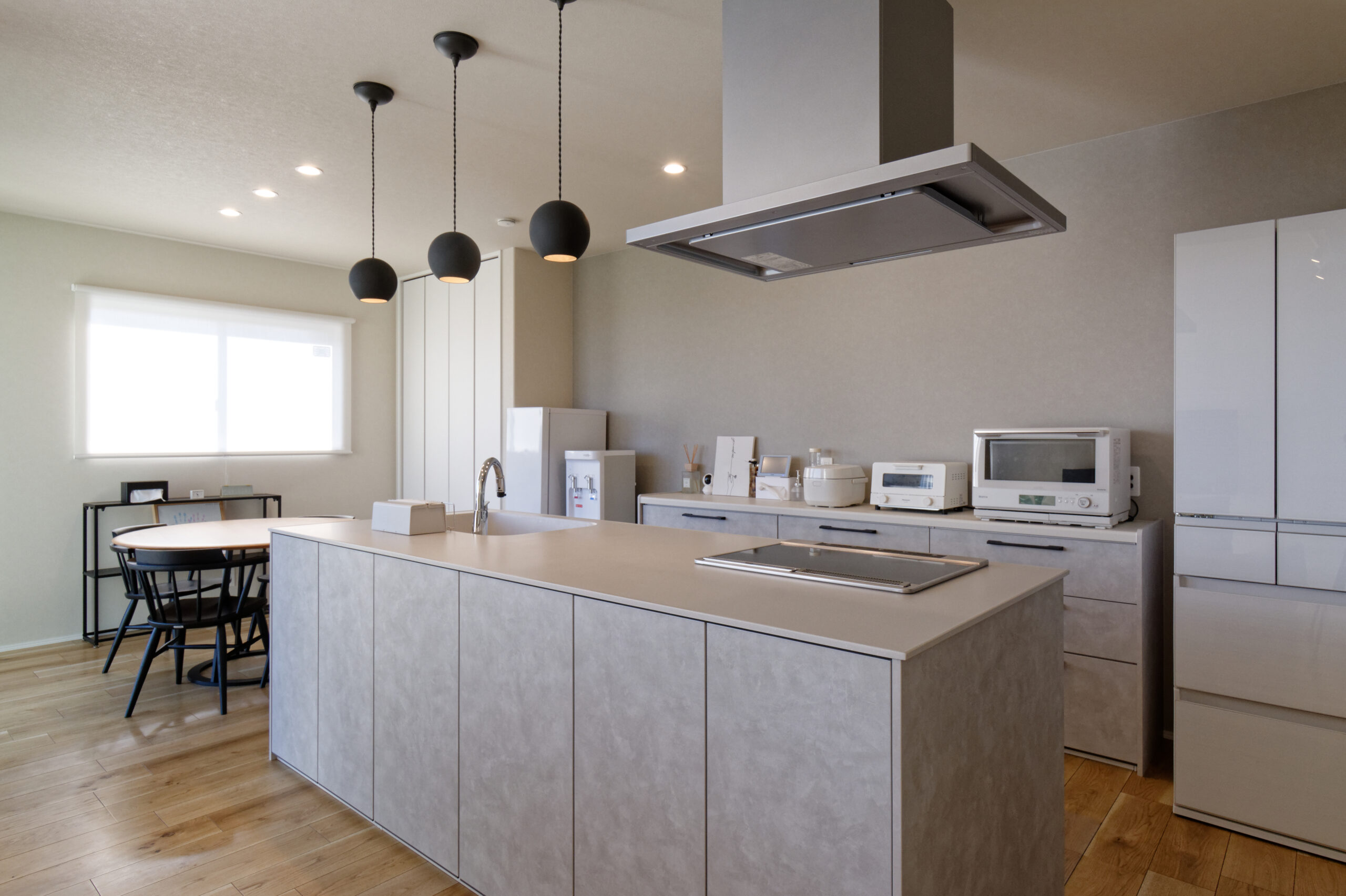 ナチャラルなグレー×ベージュにブラックのアクセントを加え、インテリアも海外テイストでセレクトされ、「隠れ家リゾート」のような住まいとなっています。