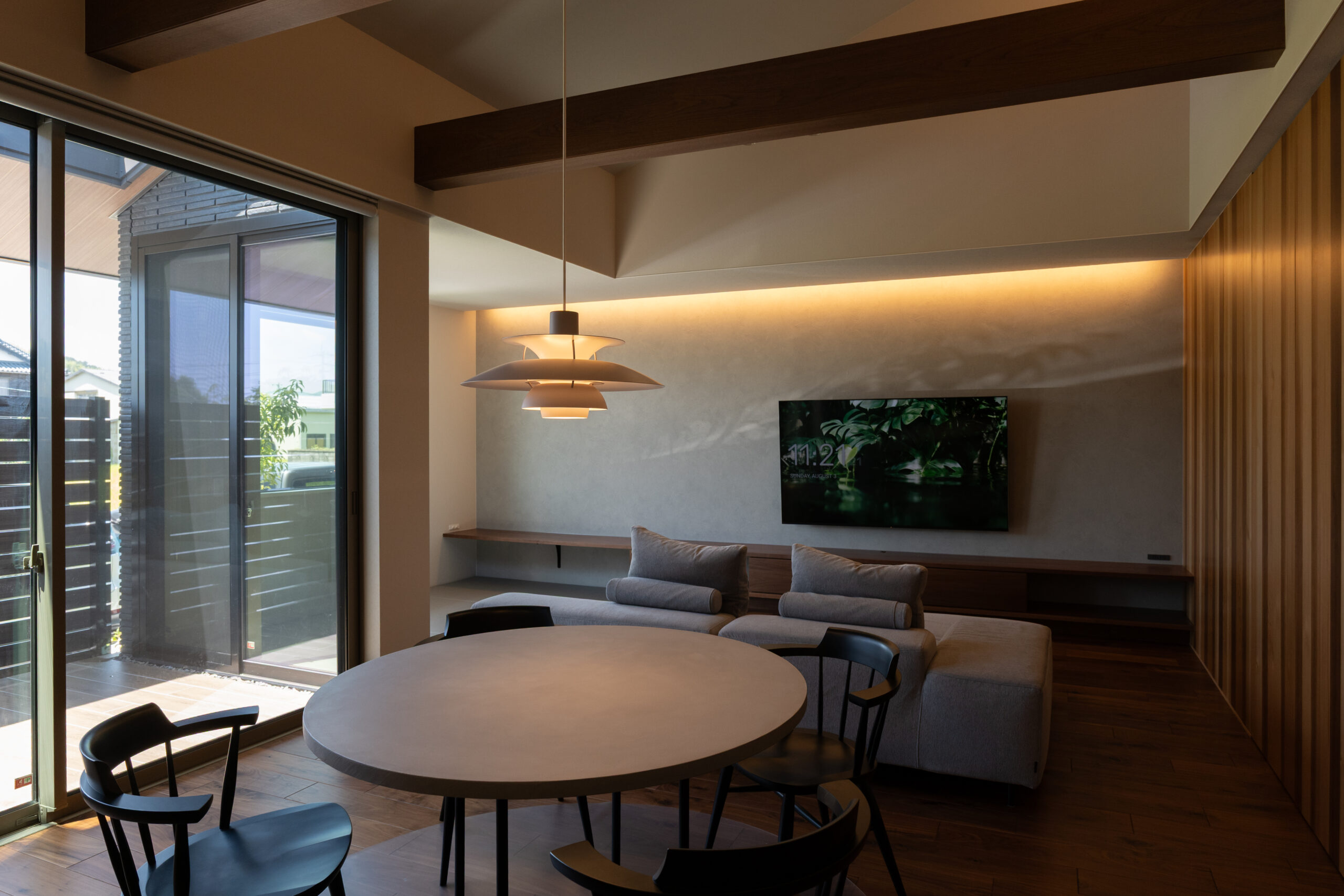 夜は、間接照明で癒されたり、明るい暗いではなく四六時中心地よい空間とは?をとことん追求した空間です。