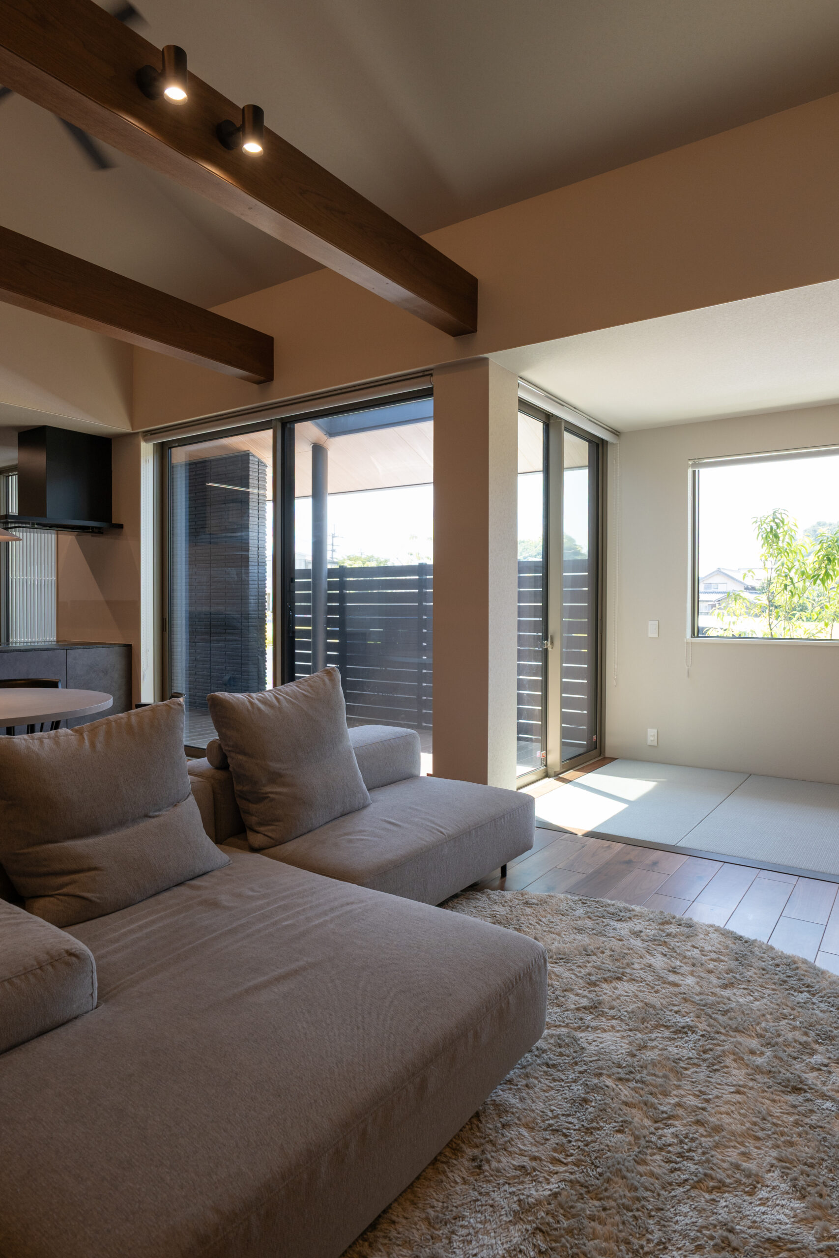 多くの人は、プライバシーの確保まで深く考えずお庭を使わないという後悔も多いからこそ、プライバシーを確保しつつ視線の先に広がる山や景色、植物を取り込む設計を実現しました。
