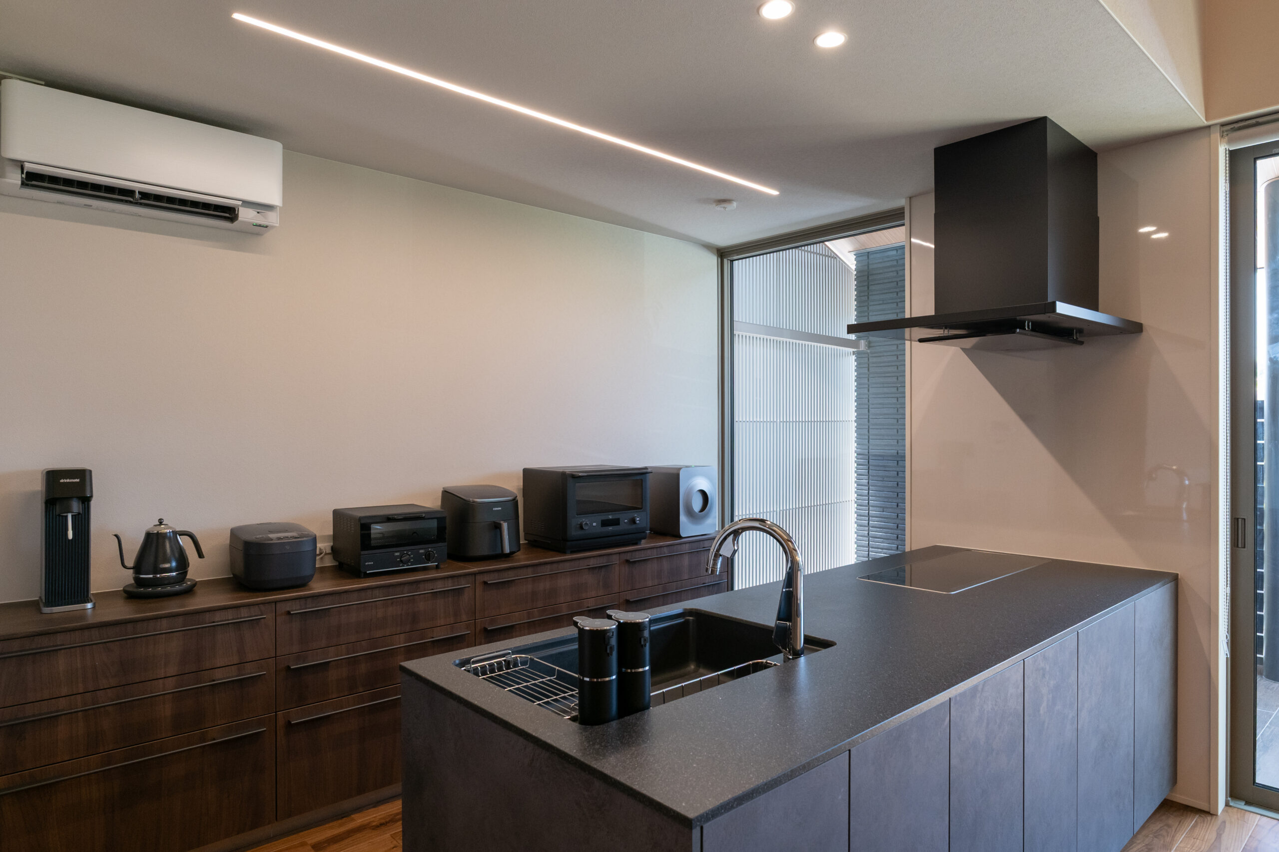 キッチンは、「料理をする場所」だけでなく、インテリアの一部として大きな影響を与えます。Lクラスの持つ洗礼されたデザインと3連IH、フロントオープン食洗機の機能性も備えたワンランク上の暮らしが叶いました